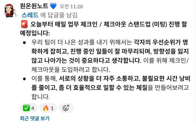 명확한 목표 아래 실시간으로 상황을 공유하고, 빠르게 피드백하고 대응하면서 불가능해 보였던 목표를 이뤄낼 수 있었다. 시간단위로 우선순위와 액션아이템 진행상황을 점검하니 실행 속도가 빨라졌고, 팀 전체가 몰입할 수 있었다.